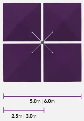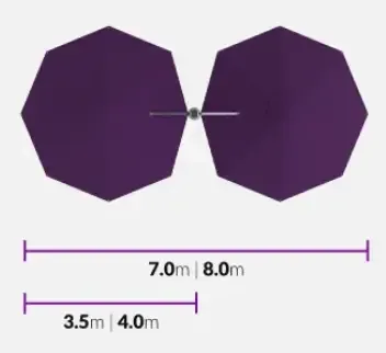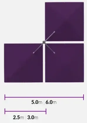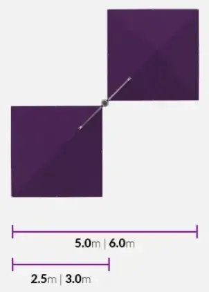 Two canopies positioned diagonally, choose between 2.5 m or 3.0 m canopies.