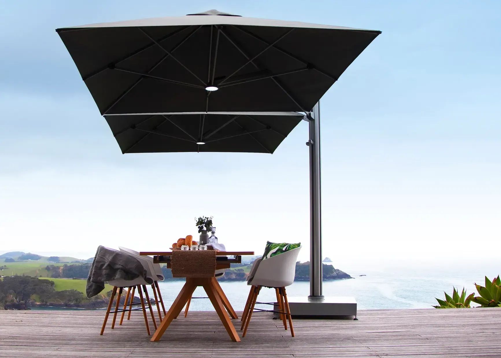 Our Shadowspec™ umbrellas are a premium shade solution that helps you stay comfortable outdoors in New Zealand conditions. Hand-built in New Zealand with marine-grade materials and patented technology, they are made for strong sun and changeable weather. Offering wide and reliable coverage, smooth operation and a slim, modern finish that suits decks, pool areas and alfresco spaces.